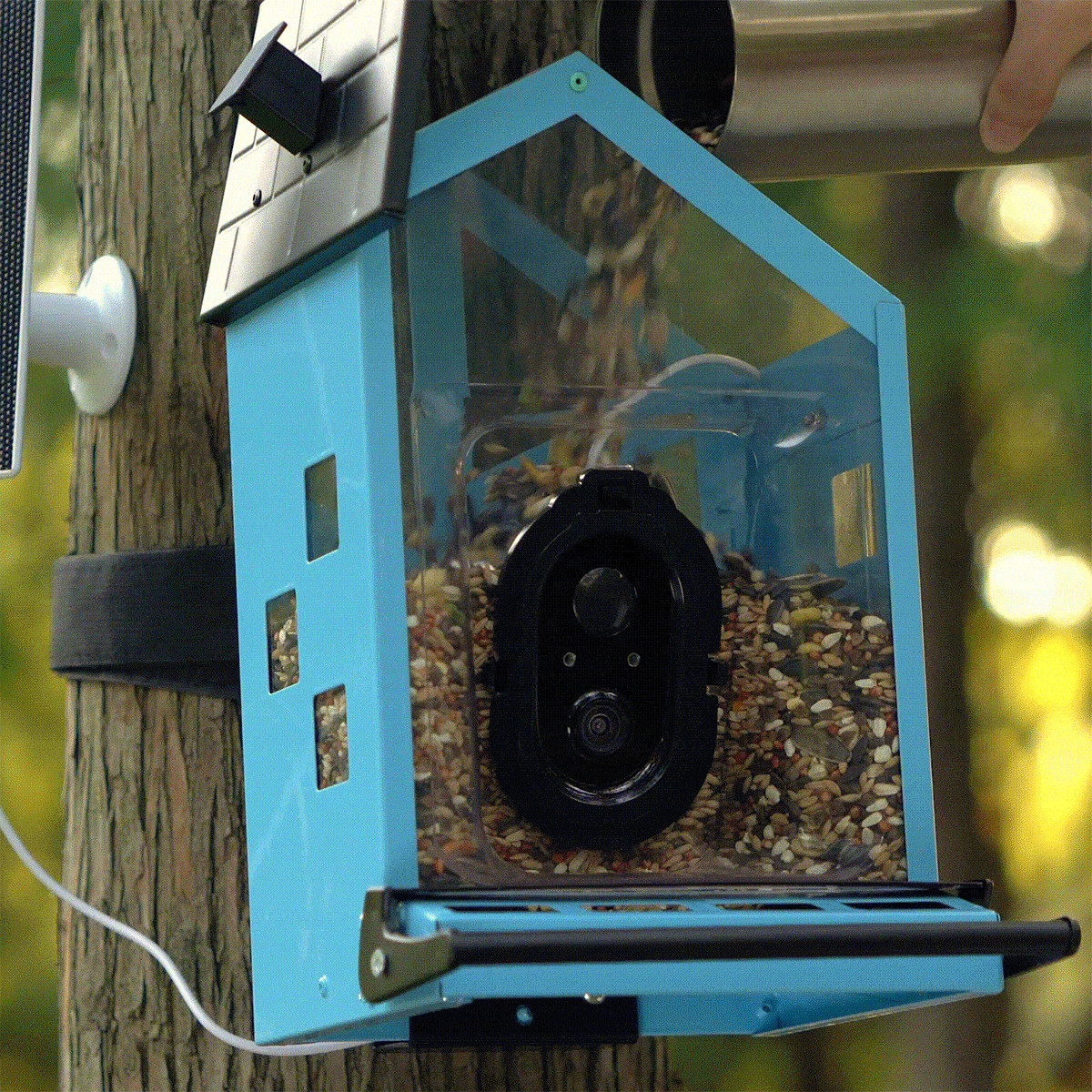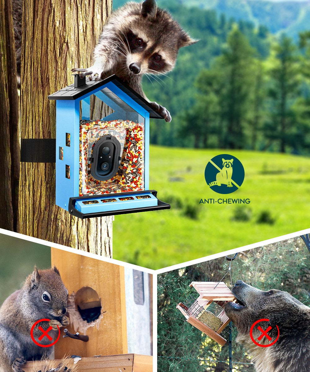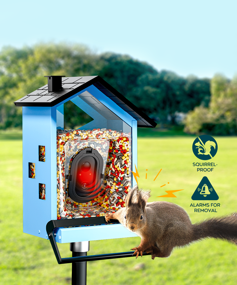 Equipped with a built-in alarm and two-way talk feature, this bird feeder helps keep unwanted visitors at bay. The alarm sounds when a squirrel approaches, while the two-way talk allows you to scare them away, ensuring your seeds stay protected and your feathered friends can feed in peace.