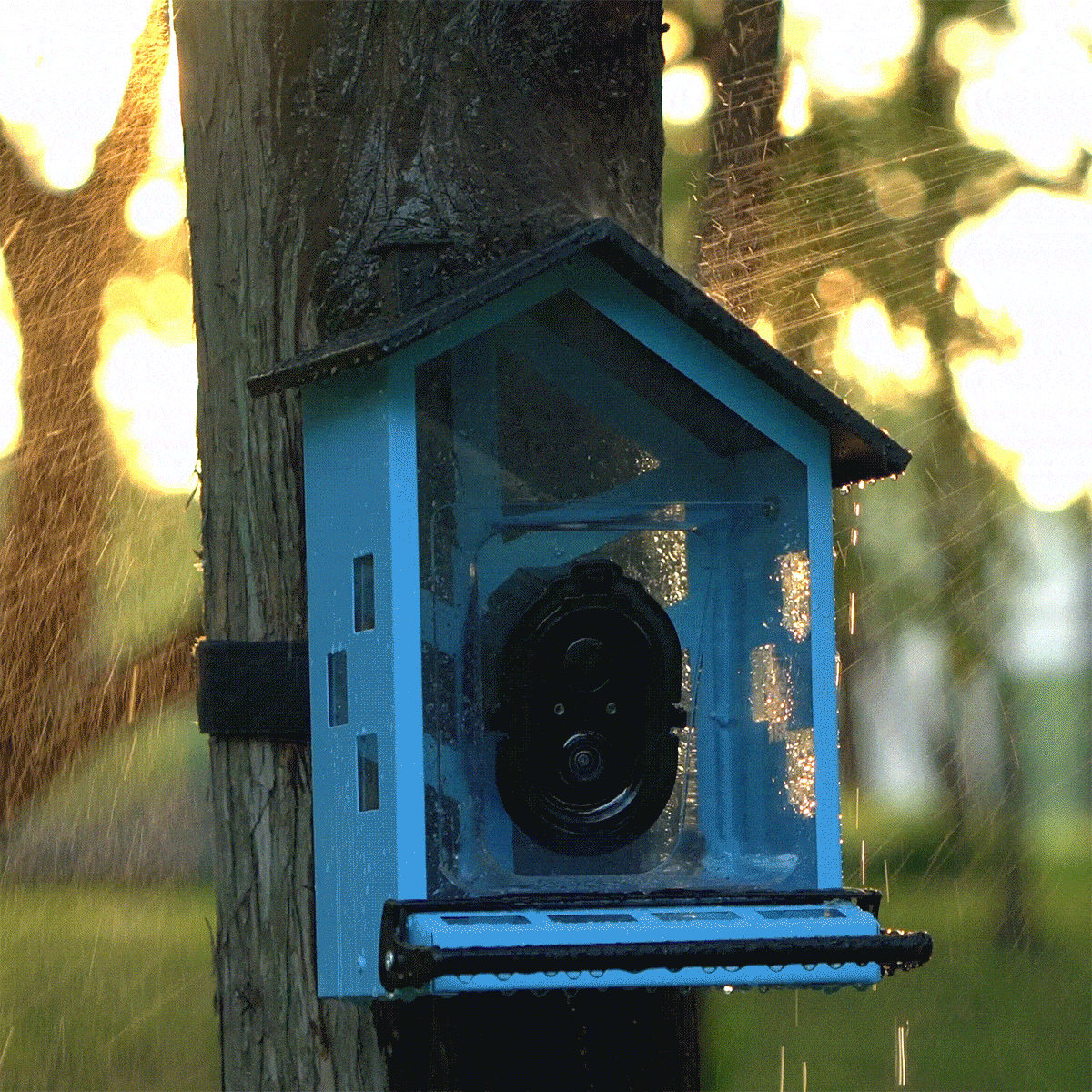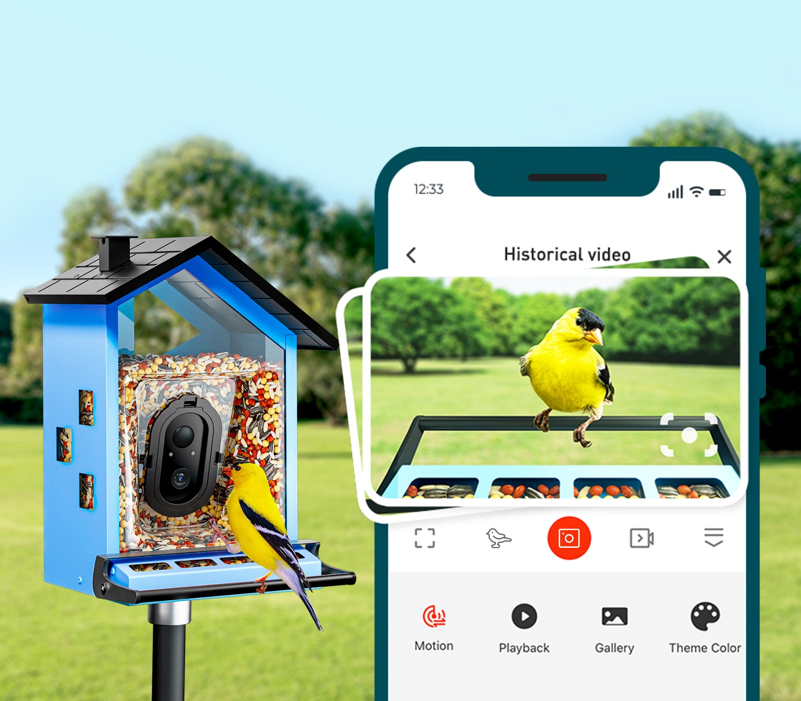 bbpEco Squirrel-Proof Metal Bird Feeder with Camera Blue/Red