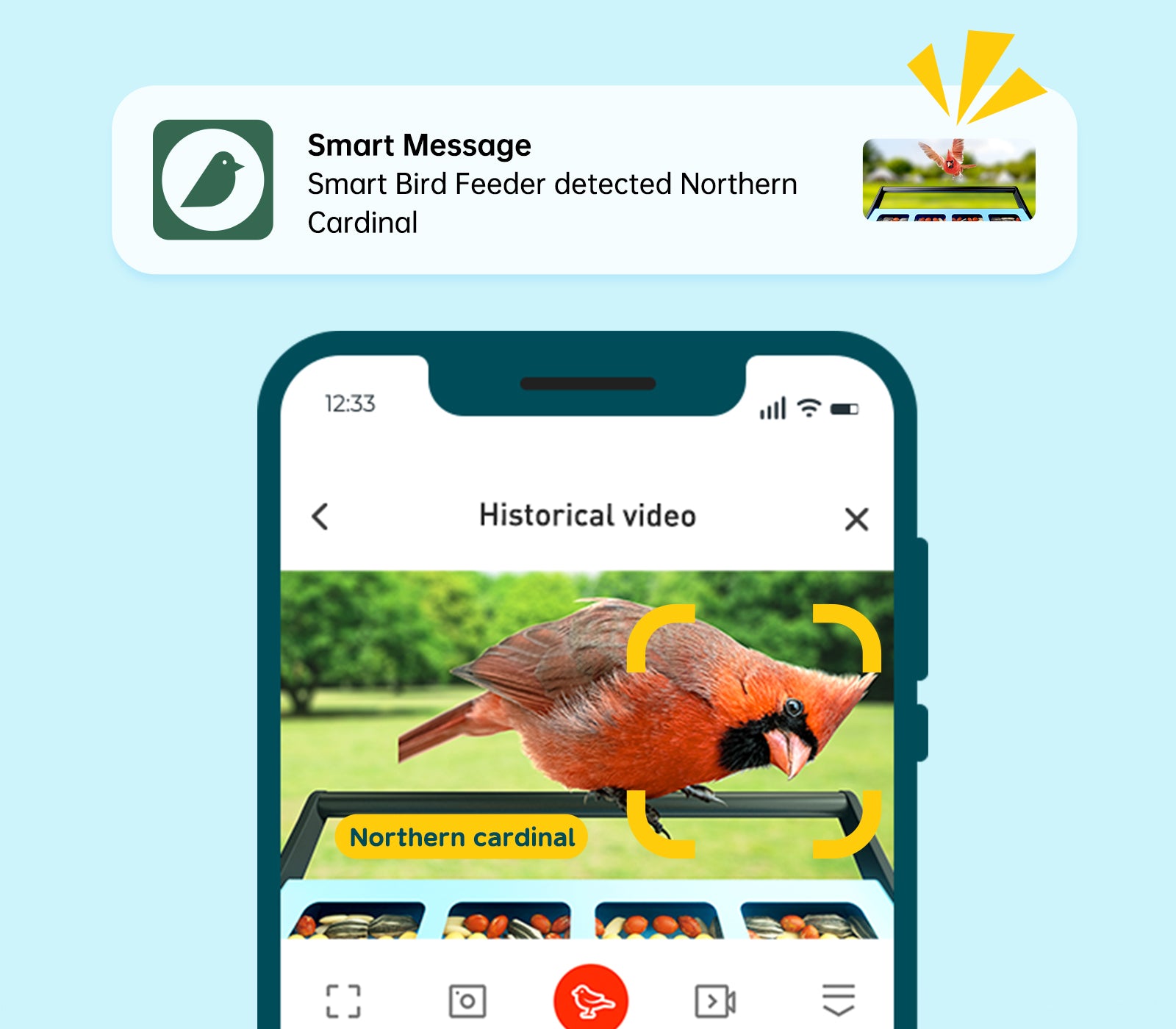 Receive instant alert whenever a bird visits your feeder. This real-time notification feature ensures you never miss a moment and adds a touch of excitement to your birdwatching experience.