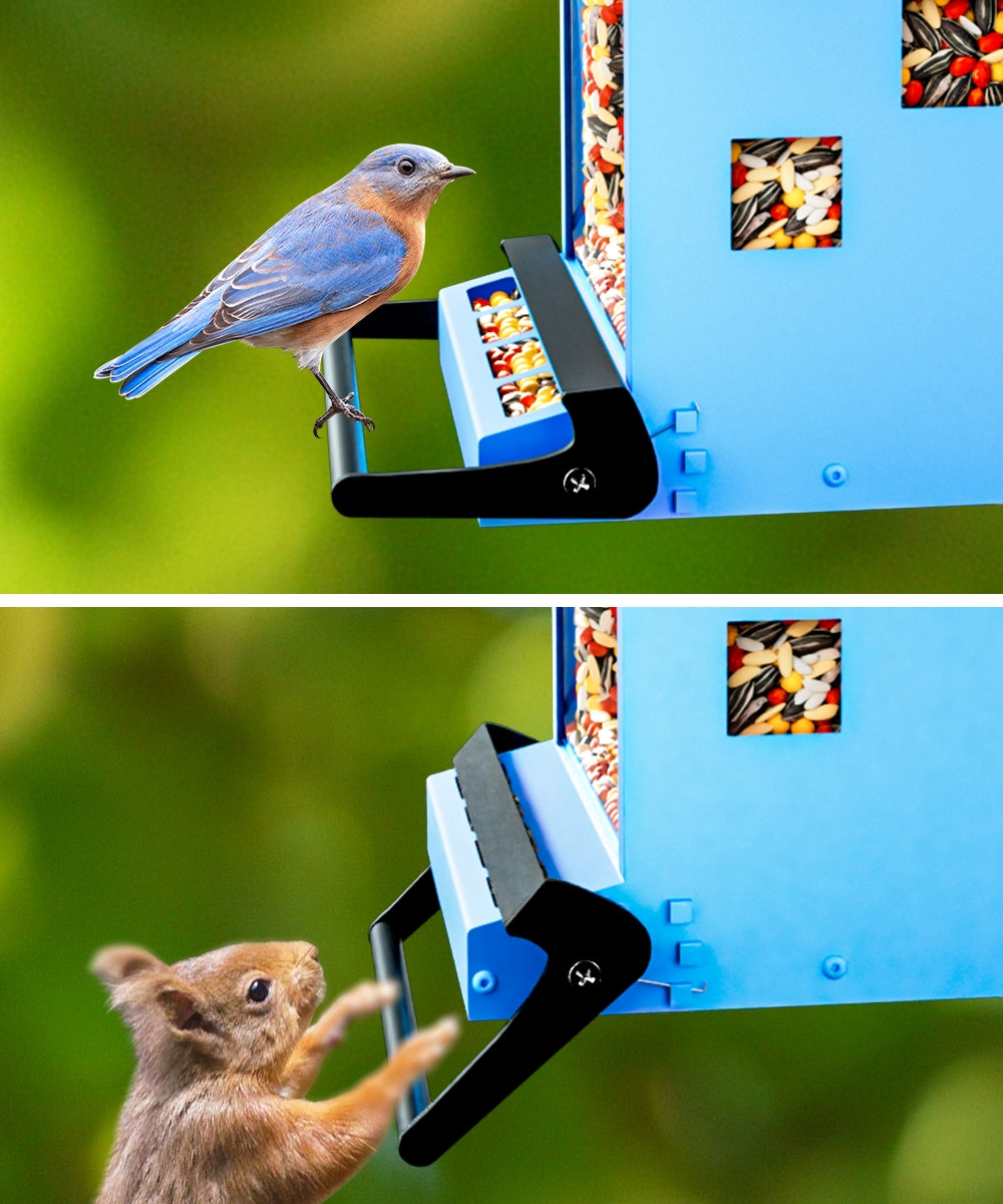 Our weight-activated perch instantly closes off access to seeds when larger birds or squirrels land, keeping your feed safe. This innovative feature ensures that only smaller birds can enjoy the seeds, maximizing your birdwatching experience while minimizing waste.